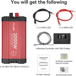 ALLWEI 2000W Pure Sine Wave Inverter - 12V DC to 110V AC Power Converter
