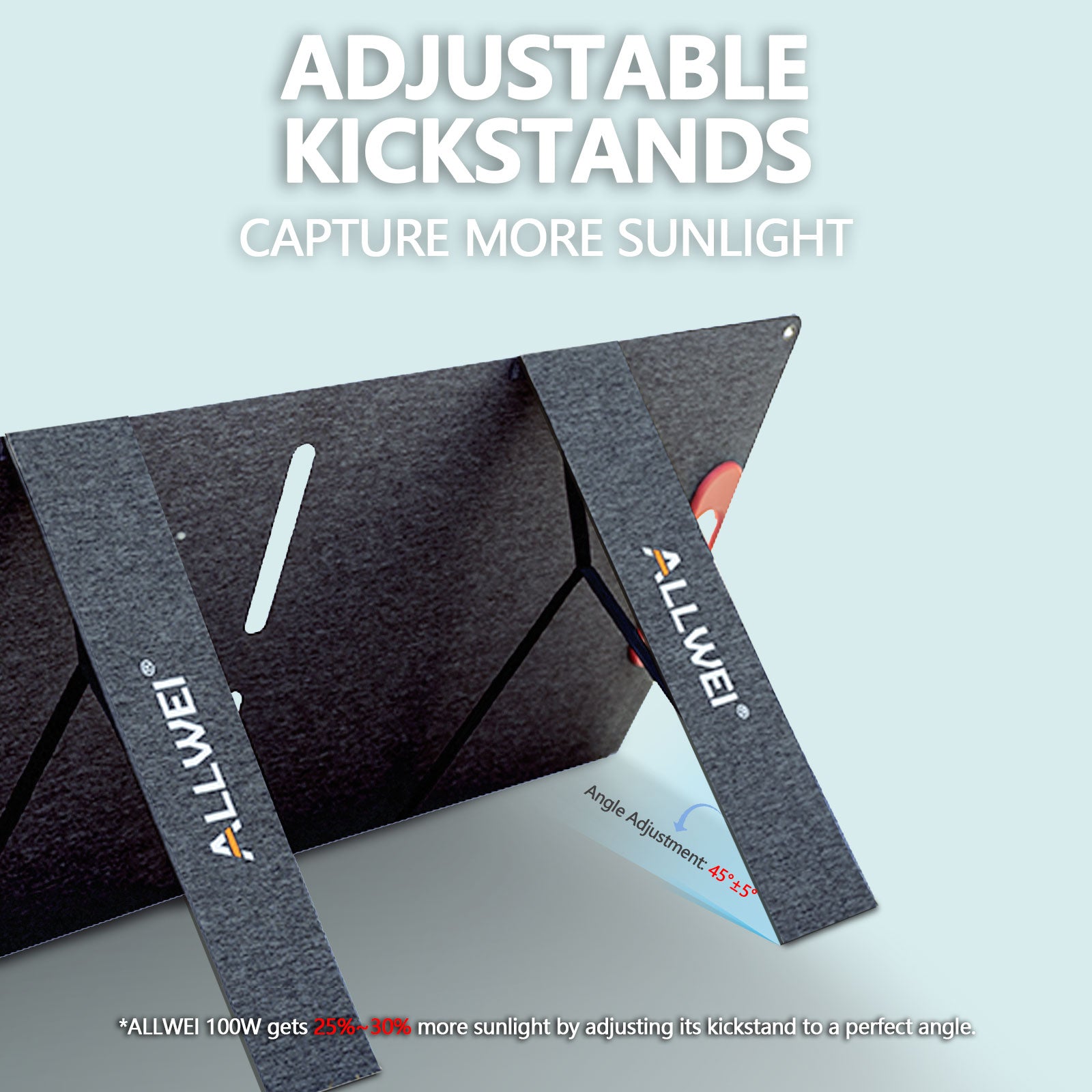 - 2 kickstands set up in seconds for better solar absorption.
