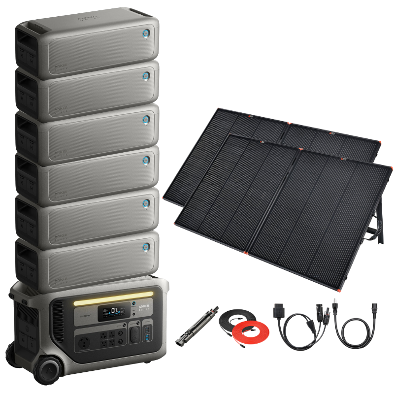 The Anker SOLIX F3000 Off-Grid Power Kit delivers a powerful, expandable, and complete energy solution for off-grid setups, mobile living, and emergency home backup. At its core is the Anker SOLIX F3000 Portable Power Station, backed by your choice of solar panel configuration and up to six expansion batteries. Every kit includes key accessories like the RICH SOLAR Inline Fuse Holder and 30FT solar extension cable, ensuring a safe, plug-and-play experience from day one. Whether you're off the grid or preparing for the unexpected, this kit has everything you need to generate, store, and manage power—reliably and efficiently.