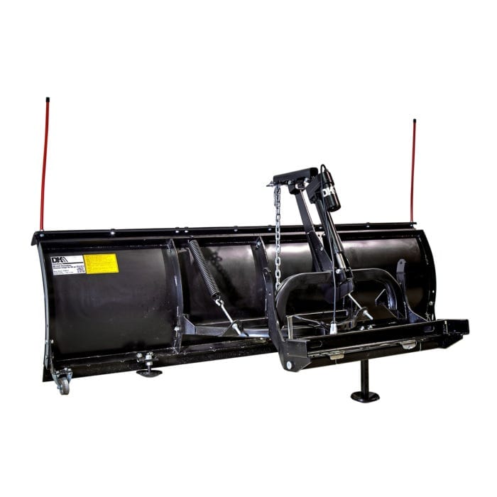 The DK2 Universal Hitch-Mounted ELITE Series Snowplows allow you to quickly and effectively remove snow from your driveway or small parking lot. These plows simply slide into a 2 front mount receiver for easy removal and storage. Each snow plow ships complete with hardened steel cutting edge scraper, rubber snow deflector, polymer-wrapped wire rope plow markers, skid shoes, castor kit, and a wireless electric actuator for extra strength and reliability. Each plow kit will also include a set of blade stiffeners for added strength by creating a 3 point connection.