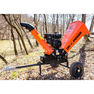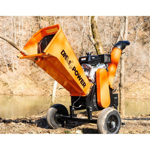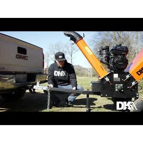 The DK2 Power 6-Inch 14 HP Cyclonic Drum Chipper Shredder features dual swing chutes, 13-inch cutting blades, DOT road legal tires, and a 36-inch extended axle. The 14 HP KOHLER Command PRO engine has an RPM of 3,600 and the dual 13-inch cutting blades auto-adjust to pulverize brush and up to 6.25 in. diameter trees. For increased longevity, the blades are double-edge cut reversable. The tool-free dual swing chutes quickly open for easy drum access. The DOT road legal tires on a 36-inch extended axle are ideal for unlevel ground and increased towing stability. The feed chute features an integrated handle for easy equipment moving, a quick-drop stand, and a 2-inch ball removable tow bar. Tool-free expulsion chute deflector rotates 180-degrees and is pickup truck height for chip bed loading. Includes your own set of lockout keys, safety glasses, ear protection, work gloves, oil bottle and assembly tools. The engine is covered by a Commercial Command Pro 3-Year Kohler warranty.