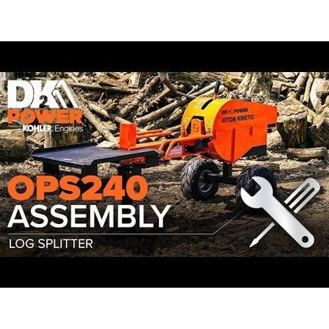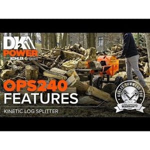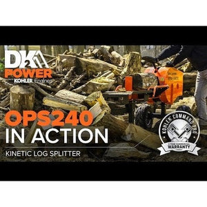 Introducing the DK2 POWER OPS240 40-ton kinetic log splitter, powered by a KOHLER CH270 7HP 208cc Command PRO engine for outstanding performance. Equipped with an oversized reinforced steel work table, safety lockout and a clam shell quick-access body for easy use and maintenance. The OPS240 has an 8-inch expansion wedge and an auto-retracting bearing-guided ram to drive through logs up to 22 inches in diameter and up to 22 inches in length. Keep yourself safe while working with its extended stability stand and ATV locking wheels, keeping the splitter securely in place.