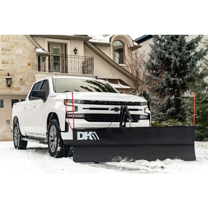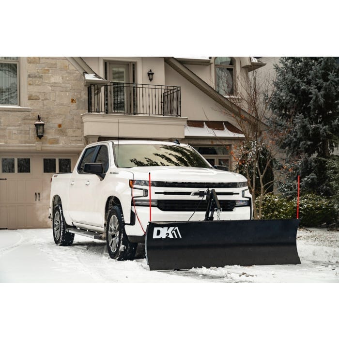 The DK2 ELITE Series Snow Plow line up takes its simple yet effective design and improves on it with a wireless actuator for ultimate reliability. DK2s ELITE Series each mount on to a vehicle specific custom mounting brackets. Each snow plow ships in a single carton complete with hardened steel cutting edge scraper, rubber snow deflector, polymer-wrapped wire rope plow markers, skid shoes, castor kit for easy storage, and a wireless electric actuator kit.