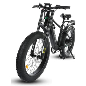 Beach, snow, there are no road conditions that 26 Fat Tire Bike can't handle. Fat tires provide good grip and good shock absorption. With the triangular frame, the whole body is more stable. Not just the beach and snow road, it can also handle mountains and muddy roads very well. Not to mention riding on a regular road. The backflush front fork provides greater handling and better shock absorption .You will be the king of the ground after you have this e-bike.