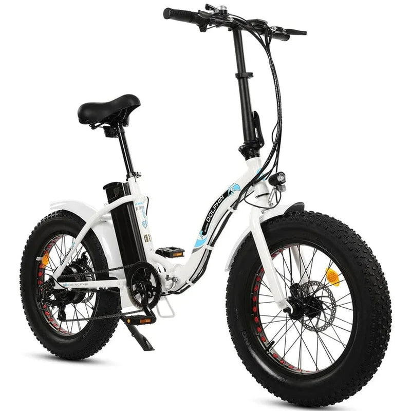 Look at the fat tires and the perfect curves. It is just like dolphins, which are chubby and cute but flexible. It has a 500W power motor, a 12.5AH high-capacity lithium battery, and its upper tube and handlebar are foldable. In addition, fat 20-inch tires provide good shock absorption. All this means this is a portable e-bike that you can ride for a long time on any road. And I couldn't come up with any other better options.