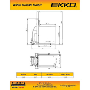 EKKO EA15B Semi-Electric Straddle Stacker 3300lbs. Cap., 119.4" Height