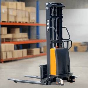 The EKKO EA15B Semi-Electric Straddle Stacker is designed with the combination of the versatility of forklift and a pallet stacker. It is ideal for loading and unloading trucks, loading docks, stock rooms, manufacturing floors and warehousing.