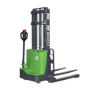 The EKKO EB13C-98Li Lithium Straddle Stacker combines the versatility of a forklift, reach truck, and walkie stacker in one powerful package. Ideal for warehousing, manufacturing floors, stockrooms, and loading docks, this straddle stacker is engineered for heavy-duty performance with a 2,800 lbs load capacity and a maximum lifting height of 98”.