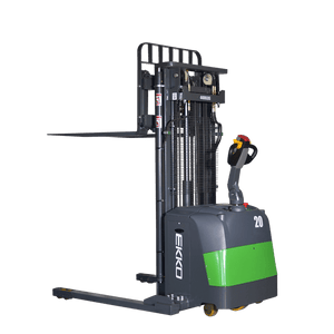 The EKKO EB20CS-189Li Lithium Electric Straddle Stacker is a versatile, high-performance solution for material handling needs. Combining the functionalities of a forklift, reach truck, and walkie stacker, this stacker is ideal for loading and unloading trucks, managing stockrooms, manufacturing floors, and warehouses. With its exceptional 4,400 lb capacity and a raised height of 189" (15.75 ft), this equipment delivers unmatched efficiency and reliability.