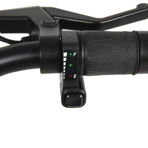 The gear selector provides riders with three speed options: 7.5, 11, and 15.5 MPH, catering to various riding scenarios with flexibility. The throttle activates once the speed reaches 3km/h, ensuring a safe and gradual acceleration.
