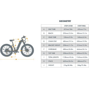 - Weight: Step-over 81.5 lbs, step-thru 79.4 lbs