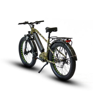 The EUNORAU FAT-HD is one of the more powerful production eBikes on the market today. Built entirely around the Bafang BBSHD 1000w motor.On the features list we have the two height pannier rack has a wide plate and the spring tensioned arms for holding small, pliable items, and the metal fenders are a great plus.Metal fenders stay in place much better, especially when encountering loose and packed terrain such as mud. The strong 13ga spokes are well fitted for the size and torque of the system, and the wheel punch-outs make for a great look on the bike overall.And it is equipped with fat tyres, front suspension and a hefty battery to help it power through the mud, snow, sand and pretty much anything else you can throw at it.