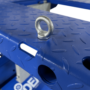The M-2200IEH-XR Motorcycle lift features our innovative retractable approach ramp system which automatically retracts the approach ramp from the work space while the lift is rising. A spring loaded drop down panel for improved rear wheel service access is integrated into the table. The drop down panel swings out of the way and quickly clips back into place when not in use. We have maintained our hand held pendant for complete operation. No need to put hands or feet in harms way when disengaging safety latches. Vise and Chock sold separately.