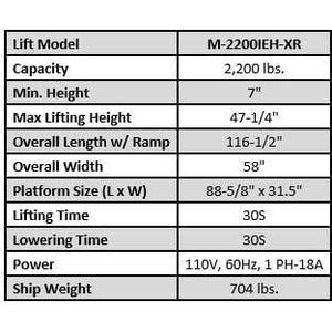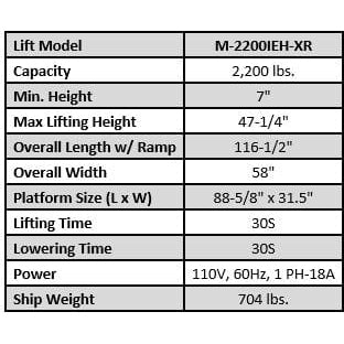 | Lift Model | M-2200IEH-XR |