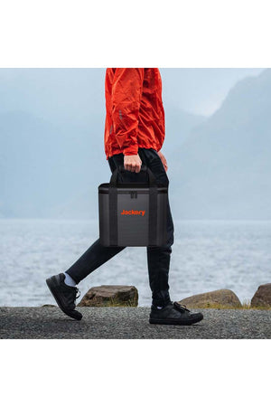 UP AND AWAY: Featuring durable double handles with adjustable straps, the bag keeps your Jackery Explorer all set for outdoor fun such as car camping, RV living, or road trips.