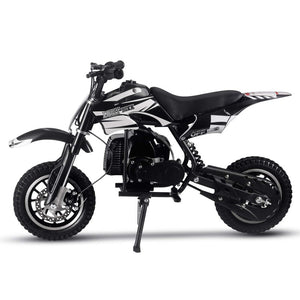The perfect kids starter dirt bike. The latest generation of 50cc mini bike engines are faster, torquier, more reliable and even easier to set up and start than ever before. 2-Stroke engines are preferred as they provide almost double the power of the same size 4-stroke. Easy pull start, improved carburetor and all of the standard safety features, support and reliability MotoTec provides.