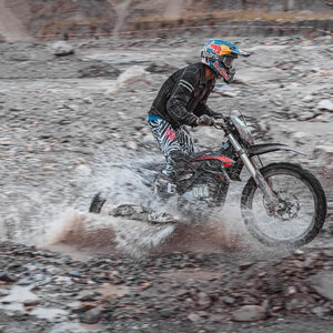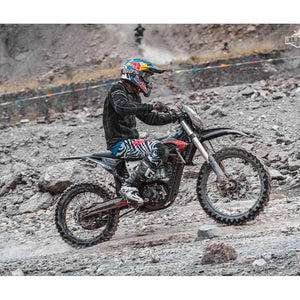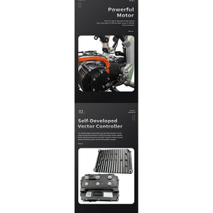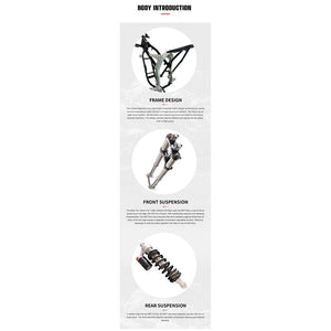 After 2 long years of research and development, we bring to you. It's powertrain is capable of delivering a top speed of 77 mph and 4-5 hours of trail riding or 30 minutes of all-out racing. Comes standard with a Aluminum Frame, DC Permanent Magnet Motor, 4 Manual Gears (0-1-2-3-4) and Reverse.