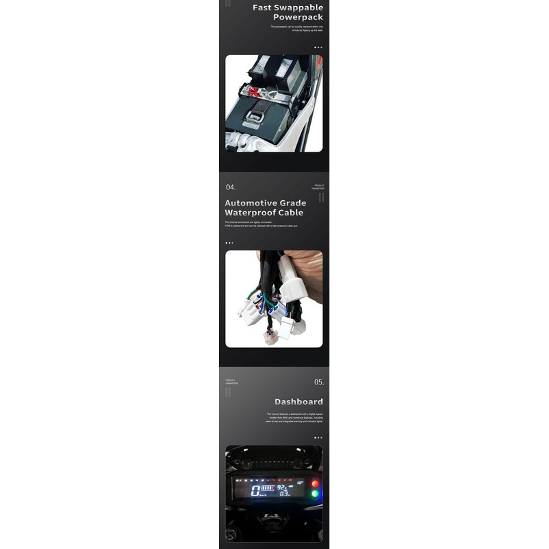 | Battery: 72v 50ah Lithium Ion (quick release) |