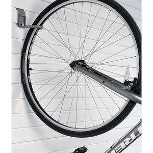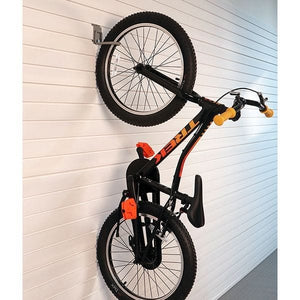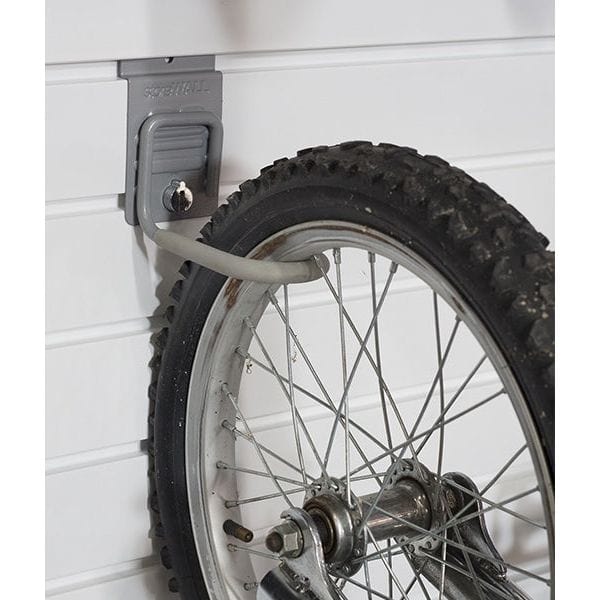 The J-Hook offers a simple and elegant solution for storing your valuable bicycles while conserving precious slatwall space. This versatile garage bike rack is designed to accommodate any bike or trike with spoked wheels and allows for efficient vertical storage.