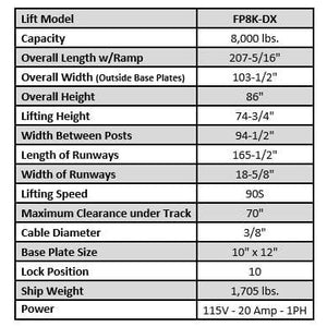 | Lift Model | FP8K-DX |